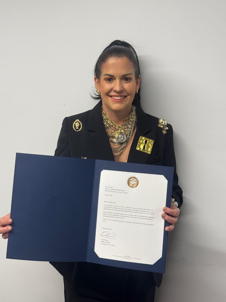 Durante la velada, Helga Terán también recibió un reconocimiento por parte de la ciudad de Doral, en honor a su aporte al desarrollo creativo, su trayectoria y su impacto dentro del ecosistema de la moda, consolidando así su influencia como figura destacada dentro del sector.